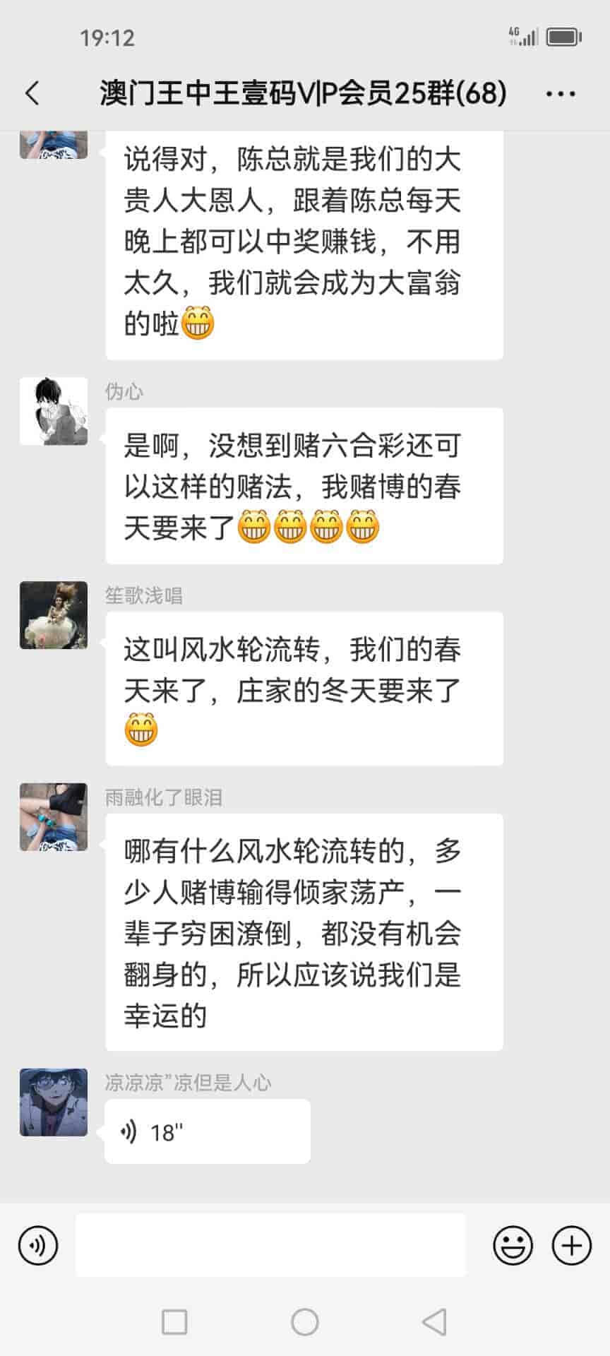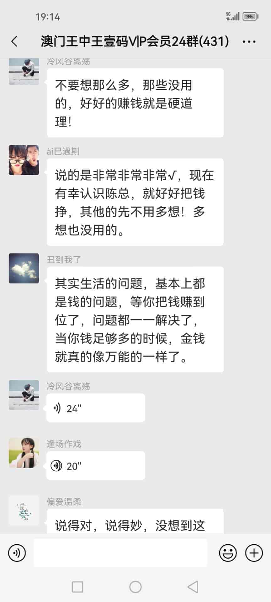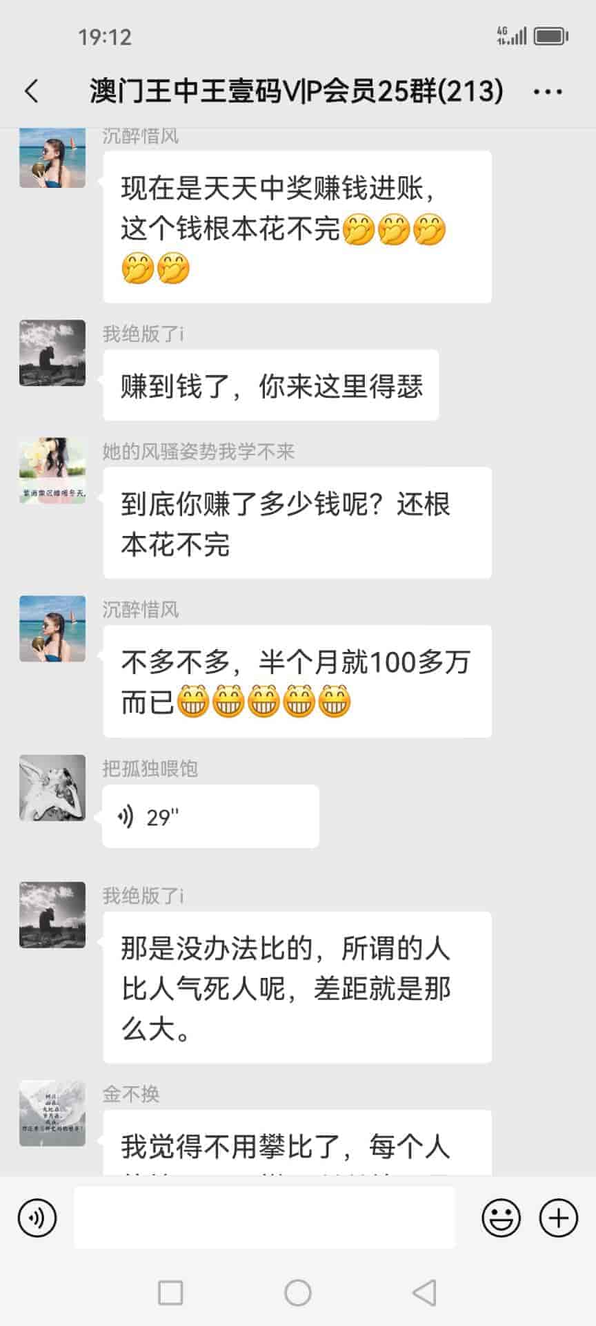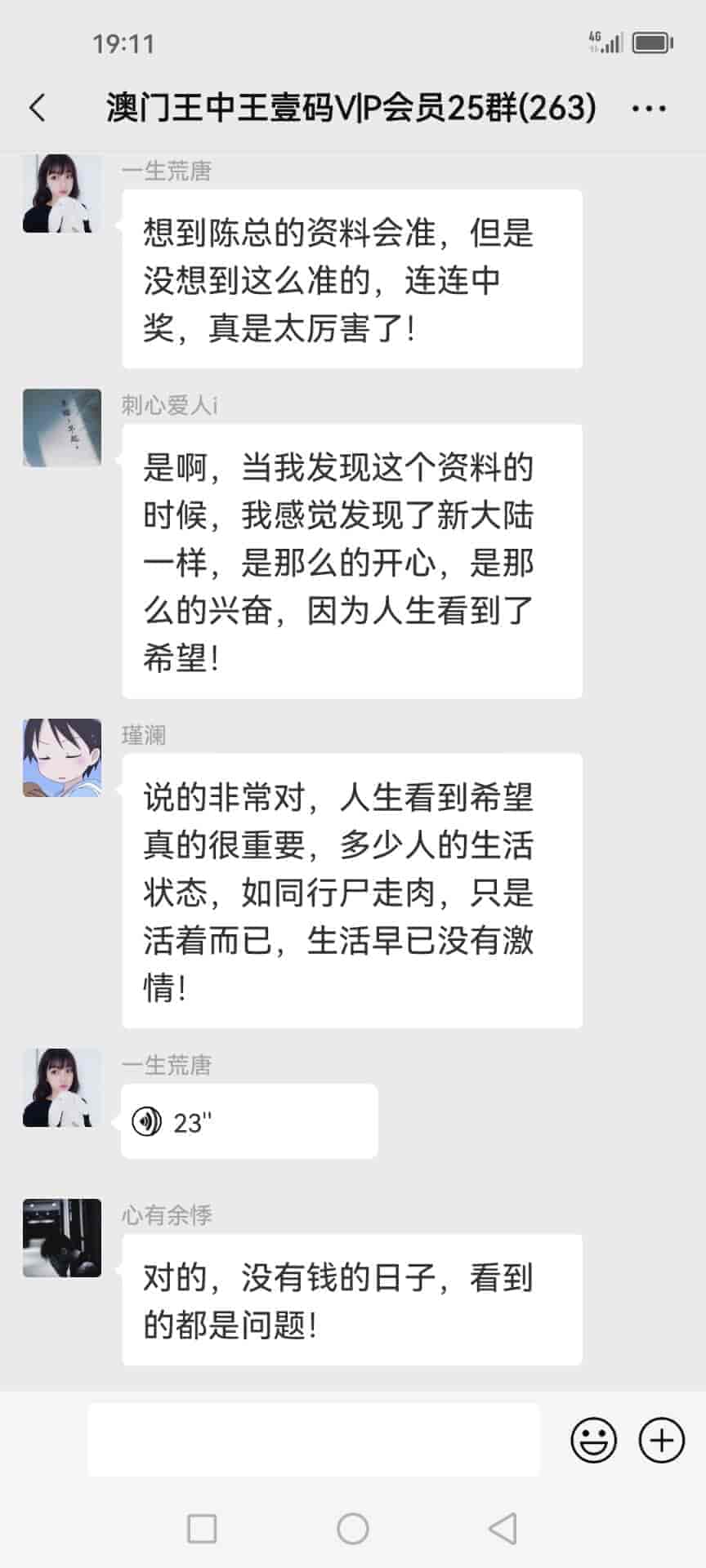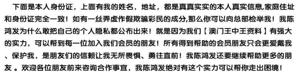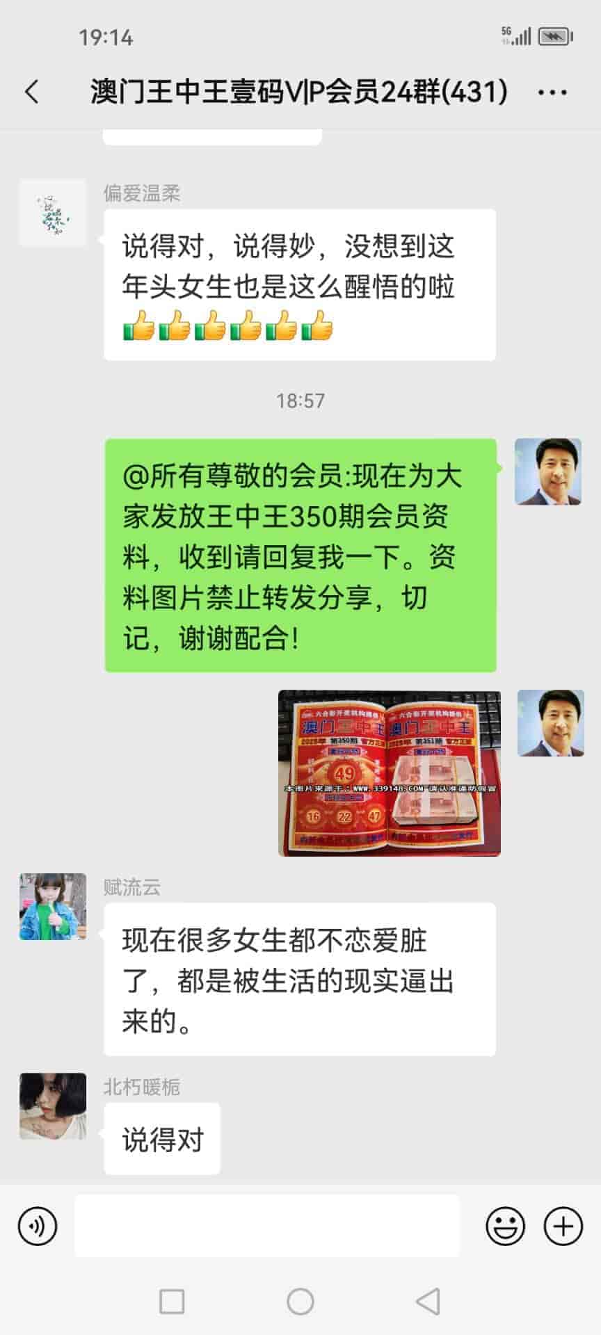 发表于51天前 陈总好,我姓欧阳,我刚刚通过扫一扫加了你的微信,也已经转了798块合作费过去给你了,我是真心诚意跟你合作的,我玩六合彩已经7.8年了,都是输的多,几乎把所有的工资都输光了,老家还欠朋友一屁股债,请陈总你帮帮我,我做人懂得知恩图报,到时候我也一定给你红包的,合作愉快。 |