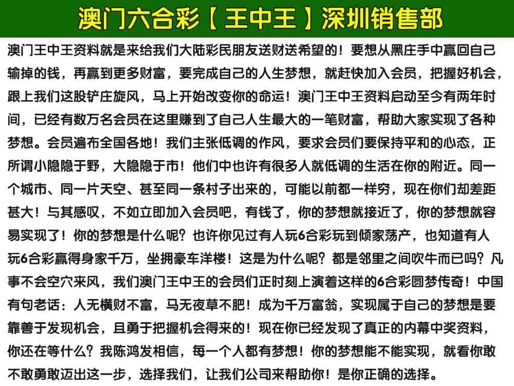 发表于43天前 陈总你好,打扰你不好意思了,我实在是输了好多钱了,没脸面对家人。跟综你资料几期了,都是我亲眼所看见的,真真实实的资料,今天我决定加入陈总的会员赚钱,我已经在微信上给你转了798元,您好,我今天加入你的会员,今晚跟着你赚钱,希望在后面的日子里,我们的合作可以顺风顺水,看到那么多的彩民都跟你赚了钱,我也想跟你发财,我以前也买过不少的资料,都是假资料,都是骗人的,所以,最后的希望放在你陈总身上了,你一定得帮帮我! |
