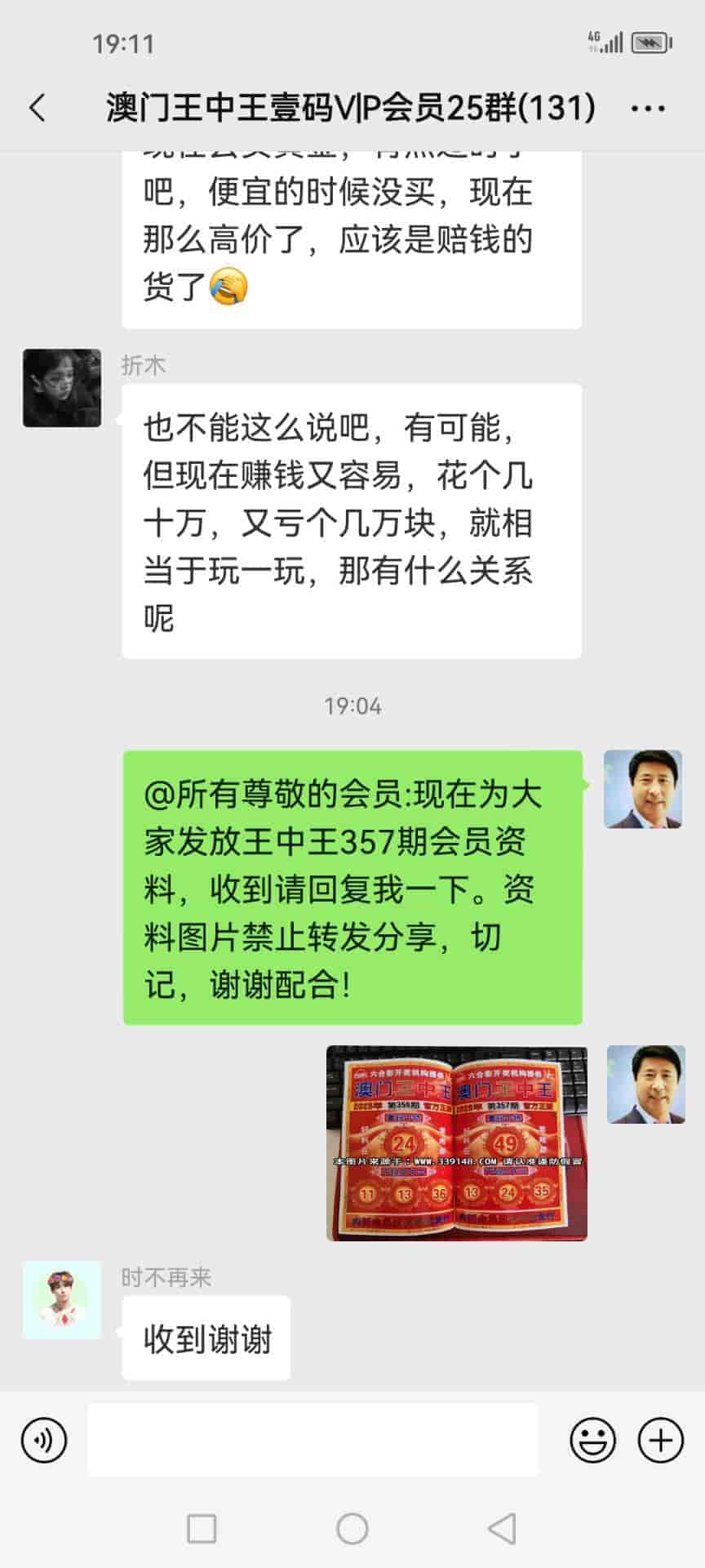 发表于42天前 上期的资料又大中,让我赚了20万多,加入会员到现在已经连中5期,也让我拥有了人生的第一桶金,真的很谢谢你陈总!一个小时前我已经汇了8万的红包到你的中国农业银行了,请查收。 |